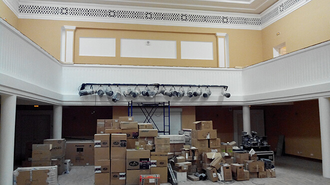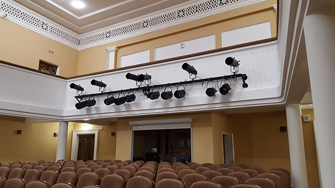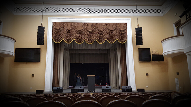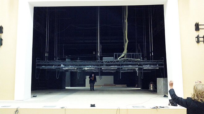 Выполнено: комплекс работ по проектированию технологических решений постановочного комплекса. Произведен демонтаж старого технологического оборудования. Произведена полная замена сценической механизации, светотехнического, звукового и трансляционного оборудования. Заменена система видеопроекции и мультимедиа с LED-экраном. Произведен электромонтаж и монтаж всего технологического комплекса. Спроектирована и смонтирована профессиональная студия звукозаписи. 2015 год.